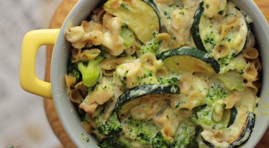 Nagrzać piekarnik do 180stopni. Przygotować średniej wielkości naczynie żaroodporne. Ugotować ryż i brokuł. Cukinię pokroić na drobne plasterki, łososia w cienkie plastry i skropić sokiem z cytryny. Jogurt wymieszać z przyprawami i serem. Na dnie naczynia wyłożyć ryż, zalać go połową sosu jogurtowego. Na to położyć cukinię, brokuł i łososia, zalać resztą sosu. Zawinąć folią aluminiową i włożyć do piekarnika. Piec 35minut.