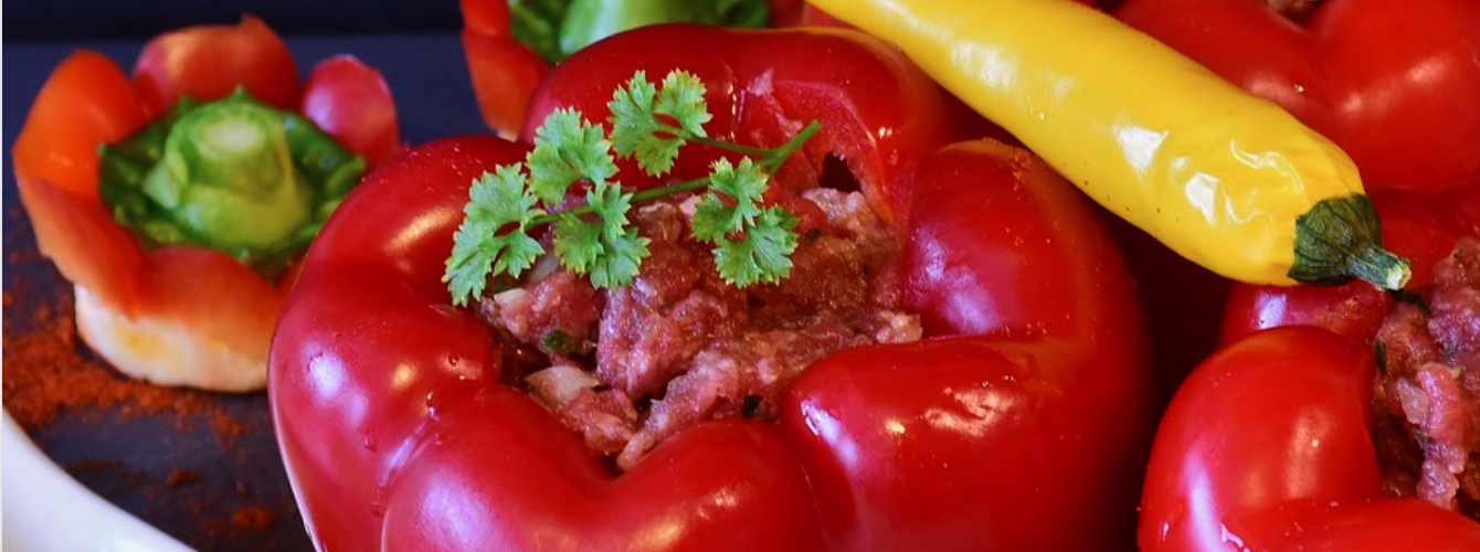 NADZIENIE// Pozostawiamy pozostałe warzywa z wyjątkiem szpinaku (i mięsa, jeśli są) w dużym rondlu z olejem kokosowym i przyprawami, aż zmiękną. Dodaj mieszankę warzyw, aż kawałki warzyw będą jednolite i małe. W dużej misce dodaj ugotowaną komosę ryżową i surowy szpinak do mieszanki warzyw i mieszaj, aż się połączą. Szpinak łatwo więdnie z gorąca. Dodaj jagody goji. Po wypłukaniu odetnij wierzch czerwonej papryki bardzo blisko góry (1/2 cala) – tyle, by nie marnować dużo czerwonej papryki. Usuń nasiona i „żeberka” – białe podszewki. Może być również konieczne przycięcie dna, aby mieć pewność, że pieprz może stać na nim i utrzymać równowagę – uważaj, aby nie wyciąć dziury w dnie. NADZIEWANIE// Teraz, gdy przygotowuje się czerwoną paprykę i nadzienie z komosy ryżowej, po prostu łyżką nakładaj w każdą czerwoną paprykę – w każdej papryce można uzyskać około 1 szklanki lub więcej, w zależności od wielkości papryki czerwonej. Ustaw paprykę pionowo w kwadratowym naczyniu, przykryj folią. Piec w temperaturze 200 stopni C przez 35 minut, przykrywając naczynie folią, zdjąć folię i kontynuuj pieczenie przez 15 minut lub do momentu, aż wierzch będzie chrupiący.