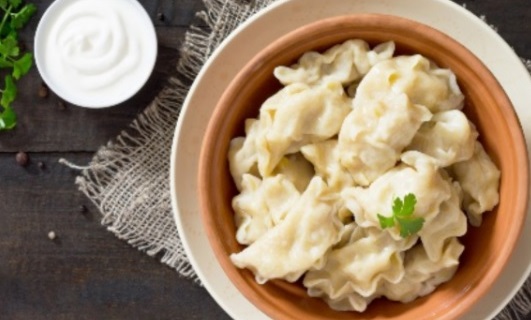 Pierogi wrzucamy na wrząca osolona wodę i gotujemy aż wypłyną na wierzch. Do pierogów można użyć tradycyjnego farszu z kapusta i grzybami.