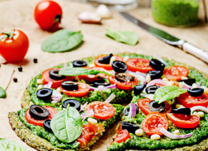 Pizza bez mąki na brokułowym spodzie z otrębami i mozzarellą