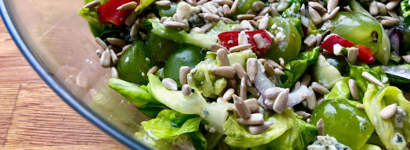 Wszystkie składniki wrzuć do miski i wymieszaj. Polej octem balsamicznym i wymieszaj. Na wierzch posyp słonecznik.