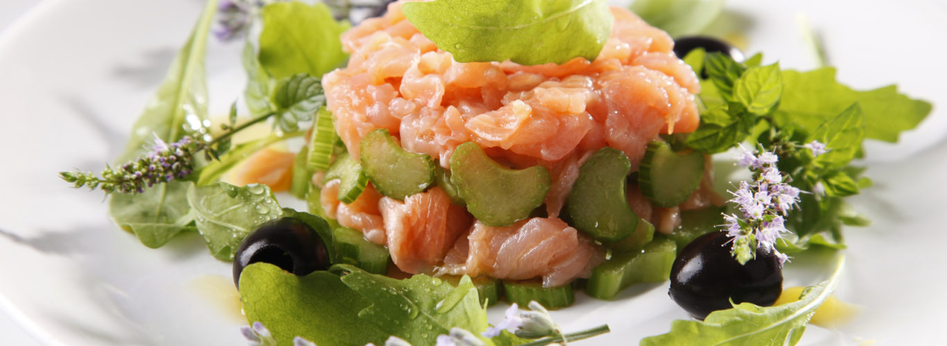 Łososia pokrój w drobną kostkę i przypraw. Zmieszaj sok z cytryny, limonki, miód, musztardę, koperek, bazylię i oliwę. W zalewie wymieszaj pokrojoną rybę. Odstaw na 20 minut, aż mięso będzie matowe. Podaj z sałatą.